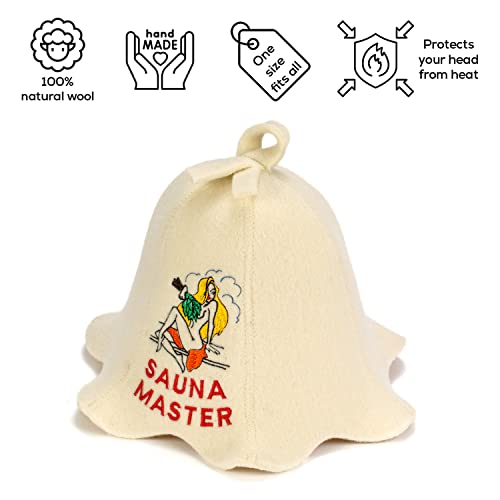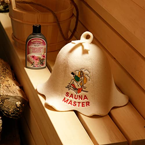Natural Textile Capello da Sauna 'Sauna Master Lady' Bianco - Cappelli in feltro di lana biologico 100% - Proteggi la tua testa dal calore - Guida eBook per Sauna in inglese incluso