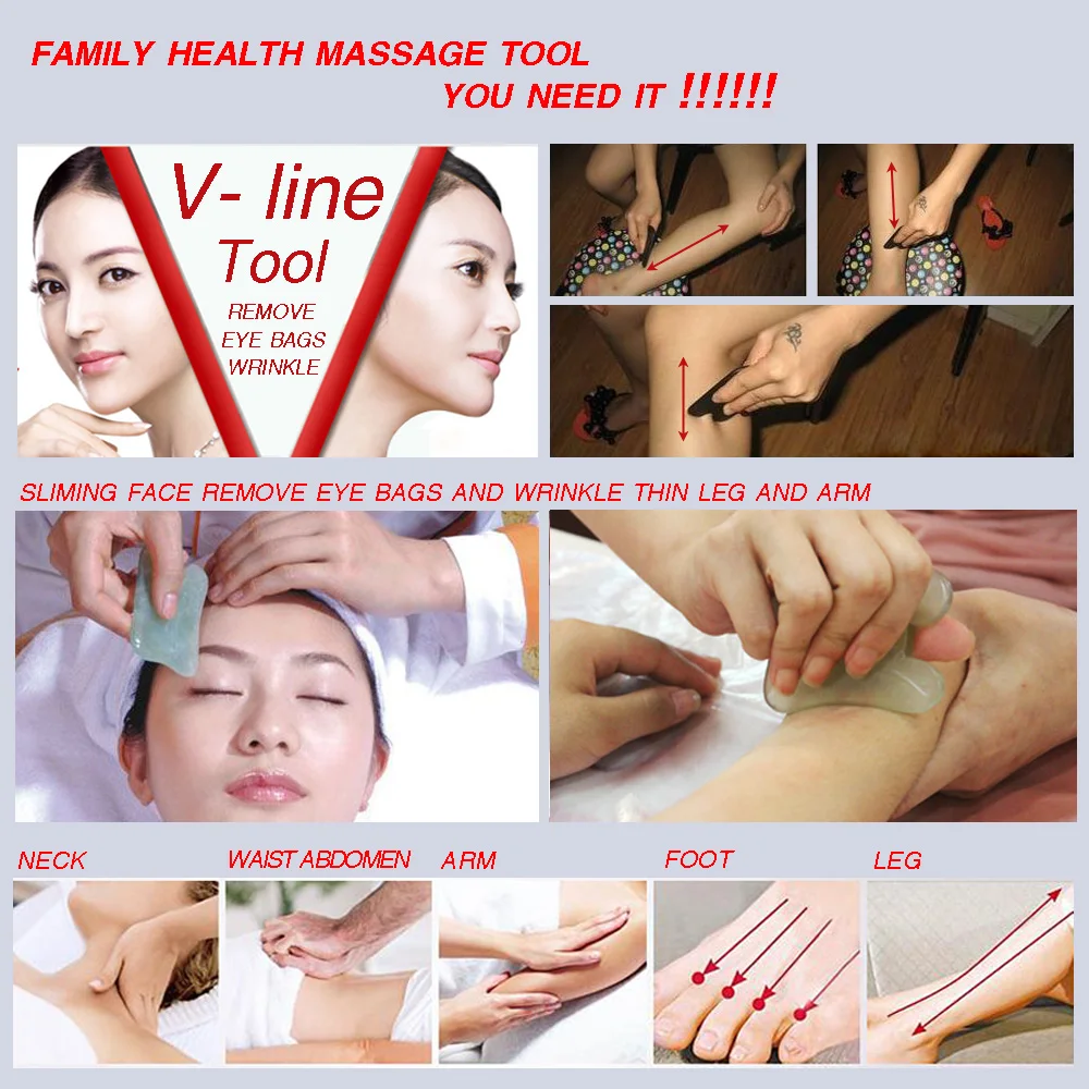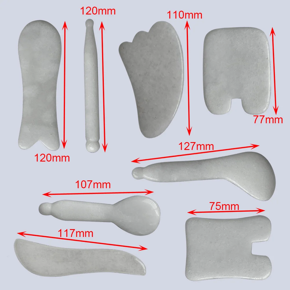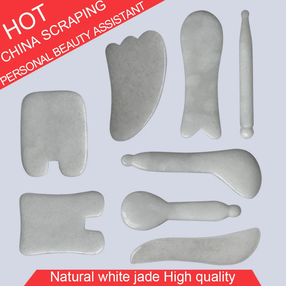 100% Natural White Jade Guasha Scraping Massage Tool Facial Beauty V-line kit 8 types different shape
