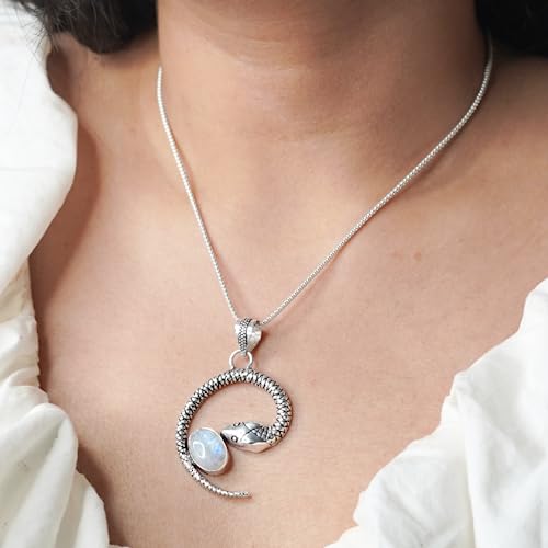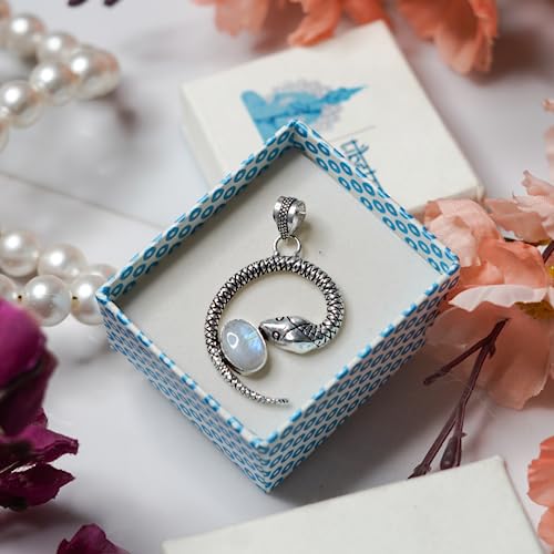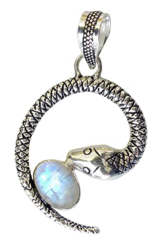 Naturale Fuoco Blu Pietra Di Luna Placcato Argento Fatto A Mano Serpente Design Ciondolo Uomini E Donne, Etnici Tribale Filigrana Placcato Argento Gioielli, Moda Collana Ciondolo Per Festa