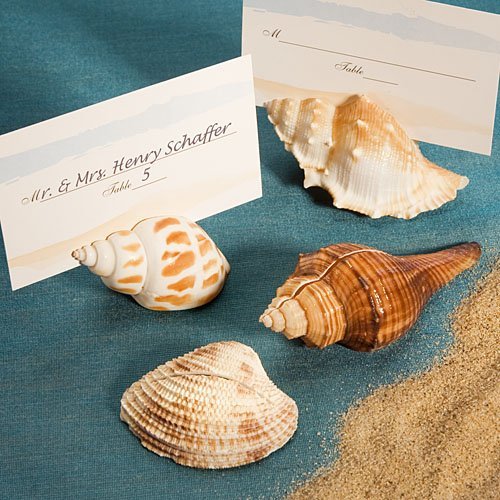 Porta segnaposto a tema spiaggia con conchiglie naturali.
