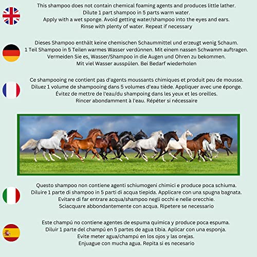 99% Naturale SHAMPOO PER CAVALLI FANGOSI - Con ALOE VERA, ALBERO DI TÉ & NEEM - 250ml di POO FREE. Senza Solfati, Senza Parabeni. Deterge, Calma, Lenisce. Per Pelli Sensibili. Formula Concentrata.