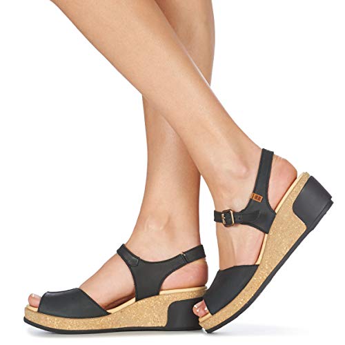 El Naturalista Pleasant Leaves, Sandali Punta Aperta Donna, Nero Nero, 38 EU