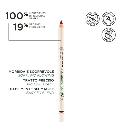 Naturaverde | BIO Make Up - Matita Labbra Rossa, Matita Labbra Lunga Durata, Lip Pencil Color Red, Matite Labbra Colorate, Matita per Labbra, Trucchi Labbra, Rosso, N°01