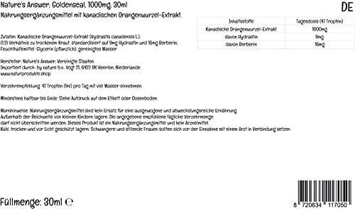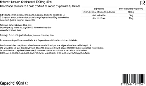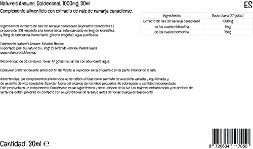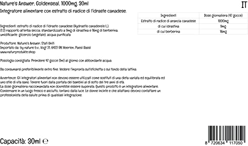 Nature's Answer, Goldenseal, 1000mg, 30ml, Testato in Laboratorio, Senza Glutine, Senza Soia, Vegetariano