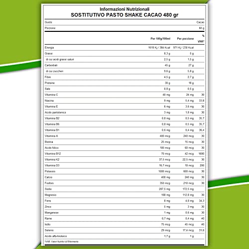 ✅ DELICATO E GUSTOSO: Gustoso sostitutivo pasto al gusto cacao che da la possibilità alle persone di sostituire il pasto in modo sano, bilanciato e nutriente, senza rinunciare al gusto.