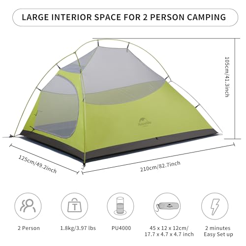 Naturehike Cloud-Up 2 Tenda da Campeggio 2 Persone 3-4 Stagioni Tenda Zaino Leggera(Aggiornare Verde Chiaro 20D)