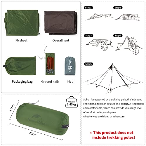 [Installazione semplice] La tenda singola Naturehike è supportata da un palo da trekking, il design autoportante consente un rapido montaggio in 5 minuti, dimensioni della tenda: 210 x 210 x 135 cm, perfetta per escursionisti, campeggiatori o scalatori!