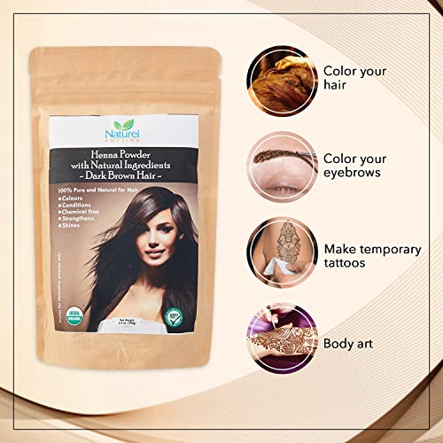 Naturel Anytime Henna per Capelli Castano Scuro - Colorante Naturale Senza Ammoniaca - Polvere per Tinta Con Indigo ed Henné Puro al 100% (Lawsonia Inermis) - Prodotto Certificato Bio e Vegano - 100g