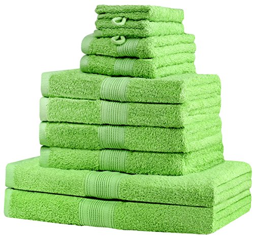 NatureMark, set di asciugamani in spugna, 10 pezzi di diverse misure, 4 asciugamani, 2 asciugamani da doccia, 2 asciugamani per ospiti, 2 guanti, set di alta qualità, 100% cotone, verde mela, 10 tlg. Frottier Set