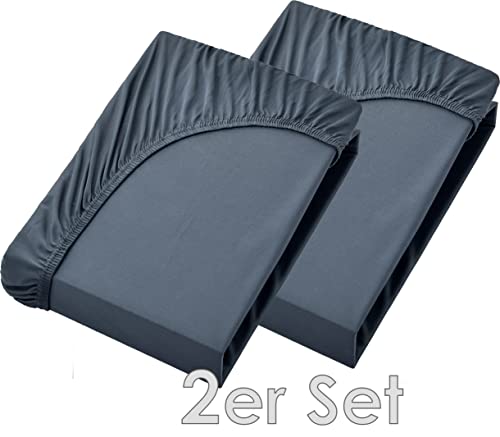 NatureMark Basic - Set di 2 lenzuoli con angoli elasticizzati in jersey, 90 x 190 cm, 100 x 200 cm, bordo 25 cm, lenzuolo con angoli 100 x 200 cm, 100% cotone, antracite/grigio scuro
