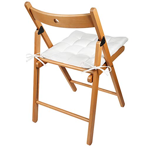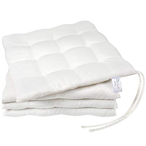 NatureMark Confezione da 4 cuscini per sedie con cordini, da 40x40 cm, imbottiti, Bianco/crema