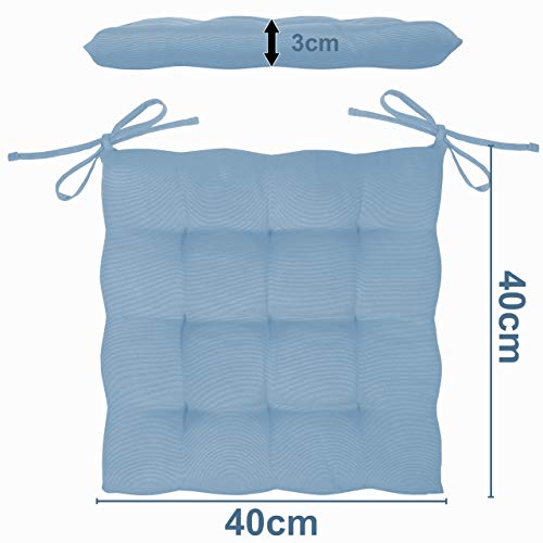 NatureMark Confezione da 4 cuscini per sedie con cordini, da 40x40 cm, imbottiti, Azzurro