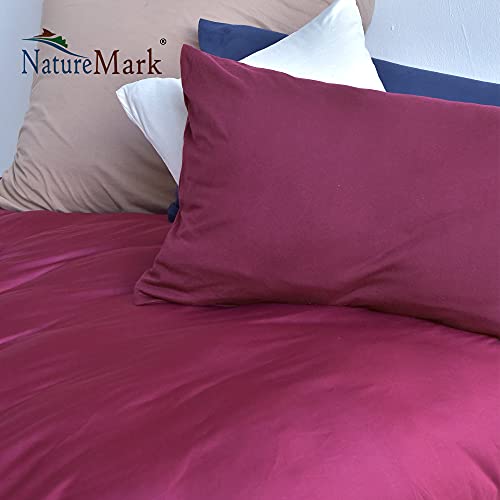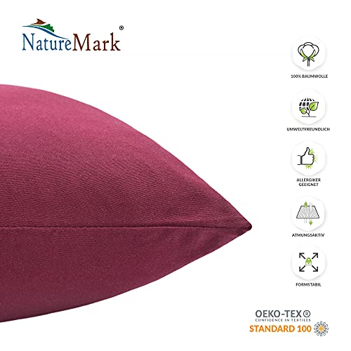 NatureMark, confezione da 2 pezzi di federe per cuscini in jersey, conformi allo standard Öko-Tex, 100% cotone, rosso bordeaux, 40 x 80 cm