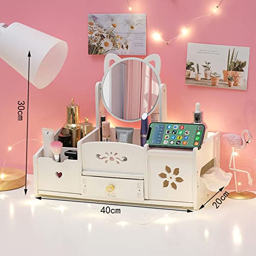Naturezhen Make Up Organiser, Organizer Trucchi con Cassetti Specchio, Multiuso Organizzatore Trucchi per gioielli, spazzole, rossetto e creme, cosmetici per Comò, Camera da Letto