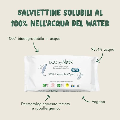 Eco by Naty Salviettine lavabili per WC - Salviette umidificate e a base vegetale, senza sostanze chimiche e ipoallergeniche, sicure per la pelle sensibile dei bambini (672 unità, 12x56)