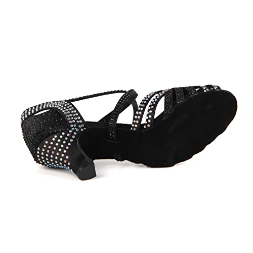 Naudamp Scarpe da Ballo in Raso Glitterato da Donna Tacco a Spillo Décolleté con Cinturino con Strass Salsa Latina ChaCha