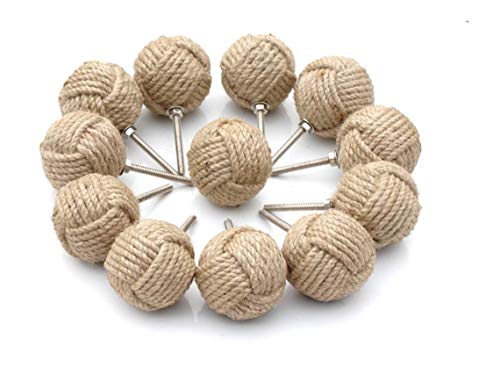 NAUTICAL GIFT STORE Set di 12 pomelli per cassetti in corda di iuta bianca