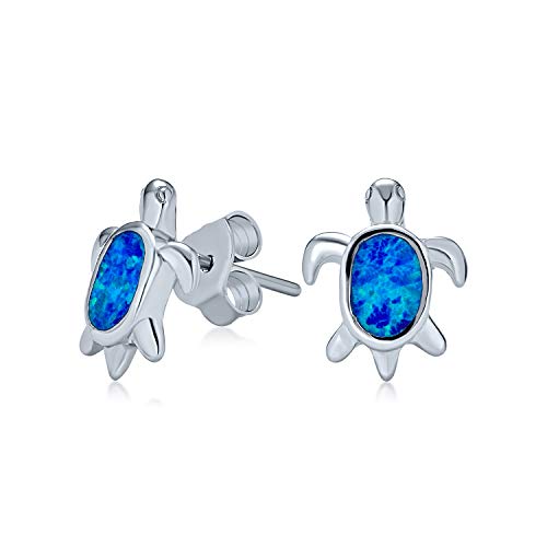 Questi animali acquatici sono borchie in argento sterling a forma di tartaruga marina, con gusci simulati di opale blu. Questi orecchini nautici da 0,51 pollici sono perfetti per i bambini di ottobre con orecchie forate che hanno bisogno di un ricordo della spiaggia.