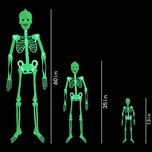 NAUZE 3 pezzi di Halloween appeso scheletro luminoso decorazioni incandescente scheletro scuro Halloween decorazioni da appendere per feste di Halloween (152,4 cm, 88,9 cm, 33 cm)