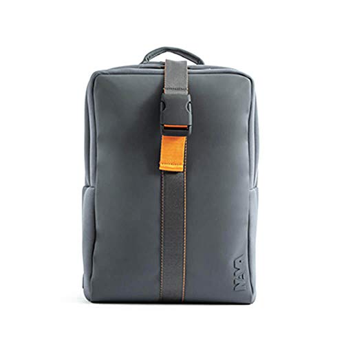 NAVA DESIGN - Zaino Organizzato Medium a due Scomparti Chiuso con Zip e Fibbia e con Tasca per PC/Tablet, Colore Grigio/Arancione - Dimensioni 40 x 28 x 13 cm