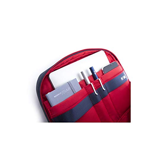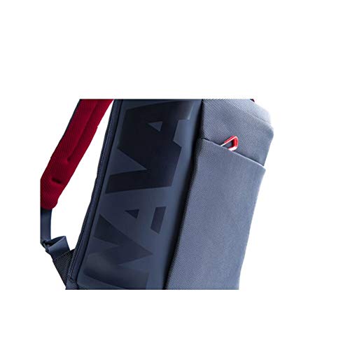 NAVA DESIGN - Zaino Small Organizzato con Uno Scomparto, Tasca Frontale, Chiusura a Zip e Porta Computer, Colore Blu Notte / Rosso - Dimensioni 38 x 27 x 13 cm