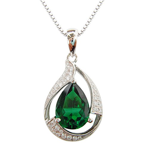 Navachi - Collana in argento Sterling 925 placcato oro bianco 18 carati con smeraldo o rubino 3,5 ct, 45,7 cm e Argento, colore: Verde, cod. SIL-9678-1