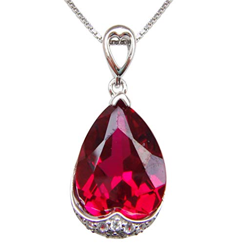 Navachi Np9639p - Collana in argento Sterling 925 placcato oro bianco 18 carati con smeraldo o rubino da 10,5 carati, lunghezza 45,7 cm e Placcato oro, colore: Rosso, cod. SIL-9639-2