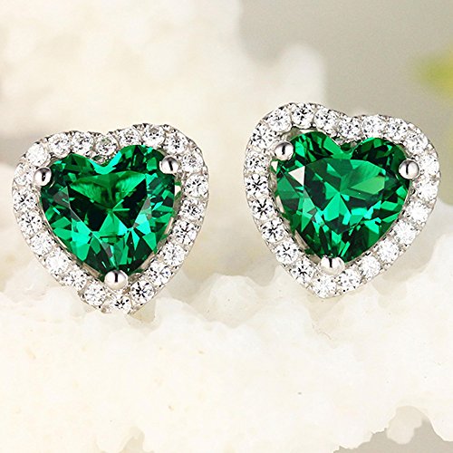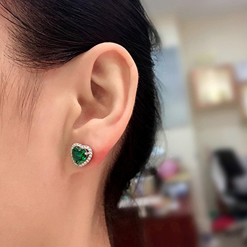 Navachi, orecchini in argento Sterling 925 placcato in oro bianco 18 carati, a forma di cuore con rubino da 4,5 carati e Placcato oro, colore: Green, cod. SIL-9131-2