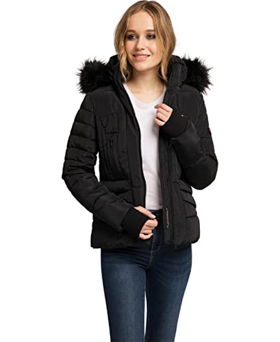 Navahoo Adele Giacca Invernale da Donna con Cappuccio in Pelliccia Sintetica Nera Nero L
