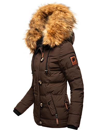Navahoo Giacca trapuntata invernale da donna con pelliccia sintetica rimovibile Zoja XS-XXL, marrone, XS