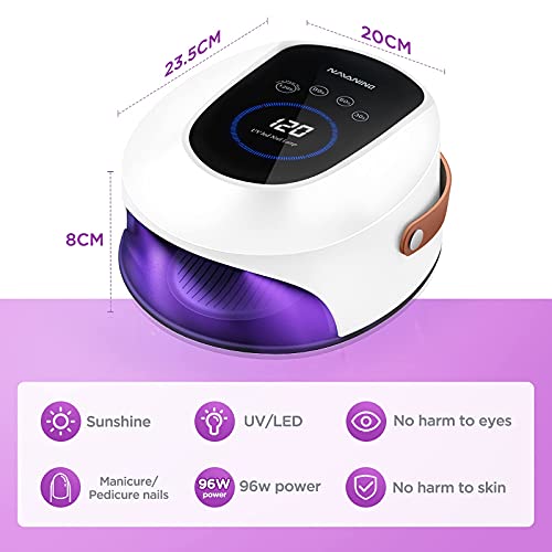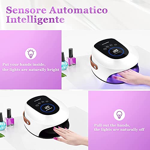 NAVANINO Lampada Fornetto Unghie UV LED 96W Forno Semipermanente con Sensore di Avvio Automatico e Display LCD, 4 timer,Manicure a Casa e in Salone