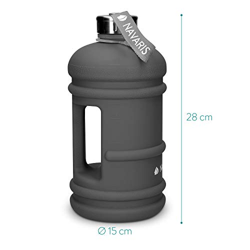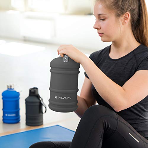 Navaris Borraccia Palestra 2,2 Litri Acqua - Bottiglia Acqua XXL Senza BPA Fitness Sport Ginnastica - Tappo in Acciaio e Cordoncino - Tanica Grande
