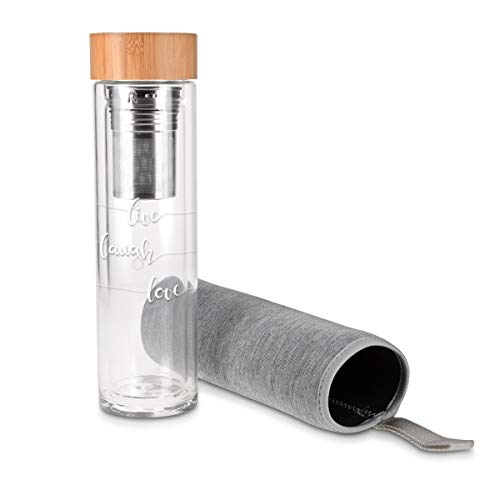 Navaris Bottiglia Termica Acqua Detox 500ml - Borraccia in Vetro con Filtro - Termos tè infusi Tisane - Coperchio bambù e Custodia - Live-Laugh-Love