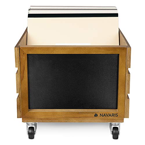 Navaris Cassetta Dischi Vinile in Legno - Cassa Porta Vinili 50-80 Dischi LP - Record Box 42,9x34,4x28cm con Ruote - Cassettina con Lavagna - Marrone