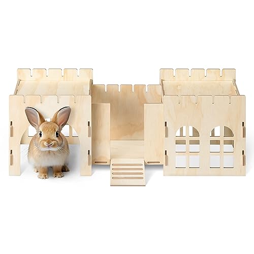 Navaris Castello Coniglio Legno - Casetta Conigli Gioco - Conigliera Casa - Tana Coniglio Nano Porcellino d'India Criceto Cincilla - Gabbia Roditori