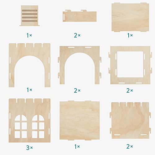 TUTTO INCLUSO: 2x tetti / 8x pareti / 3x pareti e 1x pavimento per ponte / 1x scala. La gabbietta per conigli in legno di pino e MDF misura 69 x 24 x 25,5 cm e pesa 2 kg. Richiesto il montaggio da parte di un adulto - seguire le istruzioni d'uso.