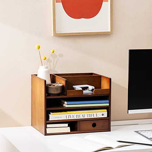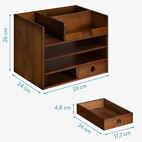 Navaris Desk Organizer Porta Oggetti Scrivania Ufficio - Minicassettiera Porta lettere Legno Bambù 33x24x26cm- Organizzatore Cancelleria a Cassettini
