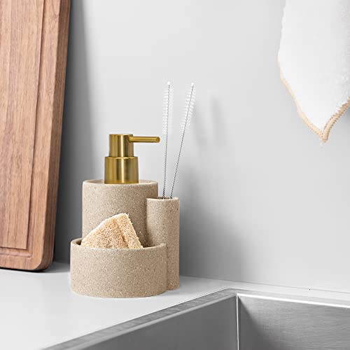 Navaris Dispenser Sapone Ricaricabile - Erogatore con Organizzatore Spugna Spazzolino Denti - Supporto Spugna Portaspazzolino - Organizer Bagno Beige