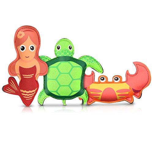 Contenuto della confezione: riceverete un set composto da tre diversi animali da immersione per bambini, molto ben visibili. Il giocattolo è realizzato in neoprene riempito di sabbia. Inoltre è inclusa una tasca in rete per riporre e trasportare il prodotto.