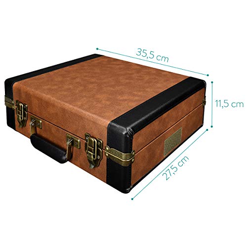 Navaris Giradischi con valigetta vintage - Lettore per dischi Jack RCA USB MP3 3 velocità 33/45/78 casse integrate - retrò ecopelle marrone nero