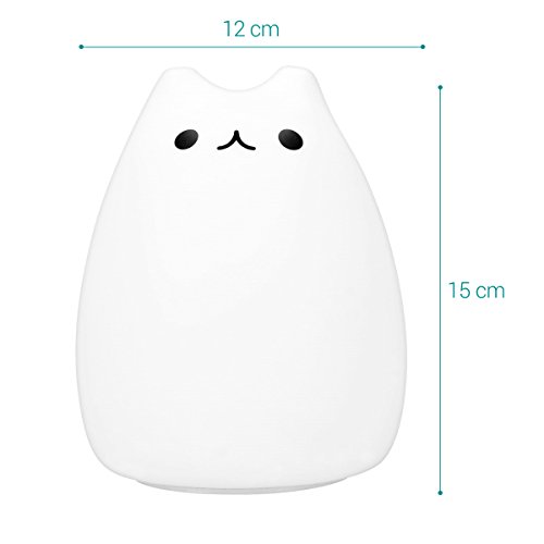 Navaris lampada LED luce notturna - lampada per bambini design gatto con cavo micro USB - lucina notturna con cambio 15 colori - bianca