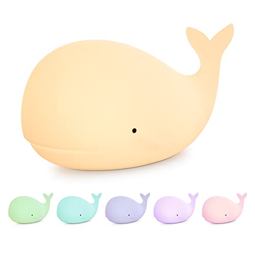 Navaris Lampada LED Luce Notturna - Lampada Bambini Design Balena con Cavo Micro USB 0,8 m - Lucina Cambio 15x Colori - Bianca - Ricaricabile