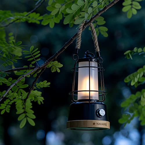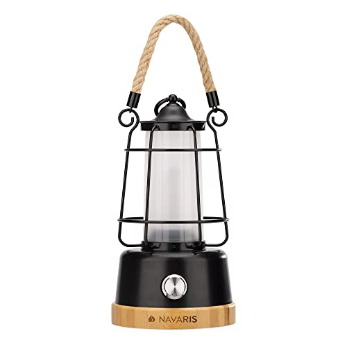Navaris Lanterna Campeggio Ricaricabile USB con Funzione Power Bank - Lampada da Esterno LED - Lampadina Dimmerabile Torcia Outdoor Luminosa - Nero