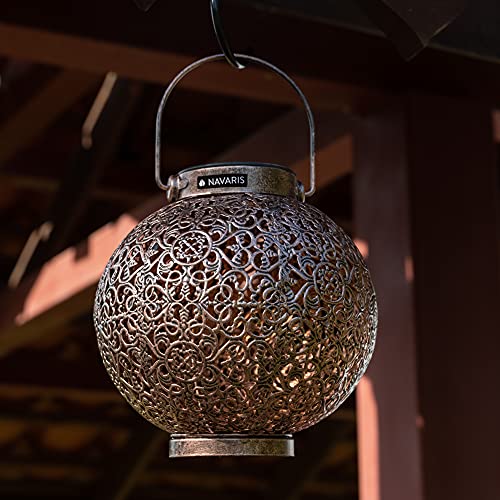 Navaris Lanterna Solare LED Esterno - Lampada da Giardino con Sensore Luminosità - Luce Decorativa Sfera Damascata Ø 16cm con Gancio - Bronzo