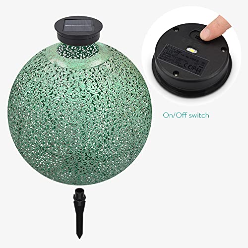 Navaris Lanterna Solare LED Esterno - Lampada da Giardino con Sensore Luminosità - Luce Decorativa Sfera Damascata Ø 30cm con Punta da Terra - Verde