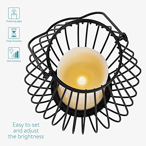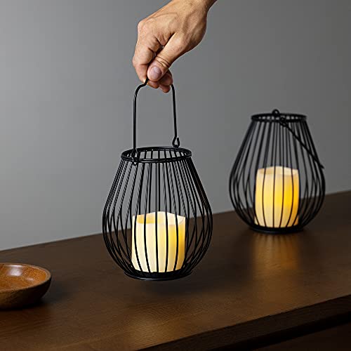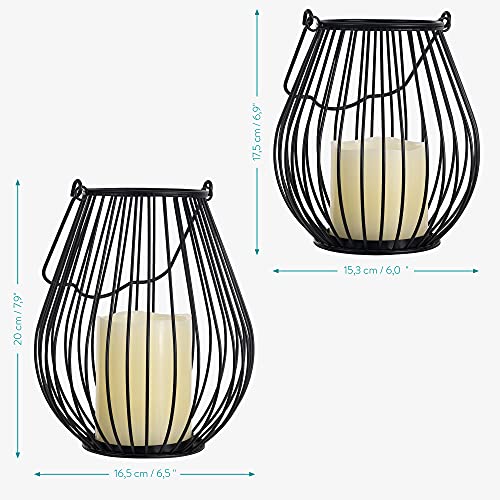 Navaris Set Lanterne Elettriche con Telecomando - 2x Candela LED Dimmerabile 2x Portacandela Ferro Battuto Nero Div. Grandezza - Lanternino a Batterie