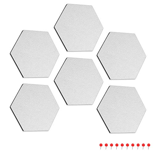 TUTTO INCLUSO: la confezione comprende 6 lavagnette esagonali in feltro bianco (15x17.7x1.5cm), 10 puntine rosse, 24 adesivi per il fissaggio. Le Pinboard, realizzate in feltro e schiuma espansa EVA, sono estremamente leggere (31g ciascuna).