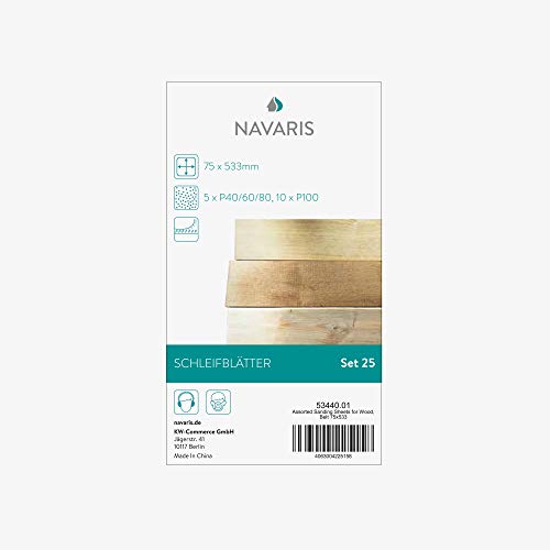 Navaris Nastri Abrasivi 75x533mm 25 Pezzi - 10x Grana P100 5x P40/60/80/ - Carta Abrasiva Multisuperficie Legno Metallo - per Levigatrice a Nastro