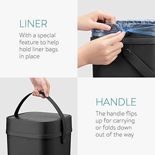 Navaris Pattumiera Spazzatura Cucina - Raccoglitore Porta Rifiuti Sottolavello 12L - Cestino Toilette - Bidone Immondizia Coperchio e Manico - Grigio