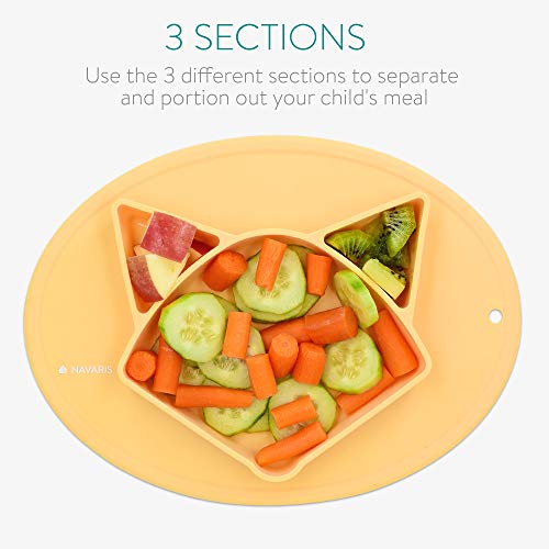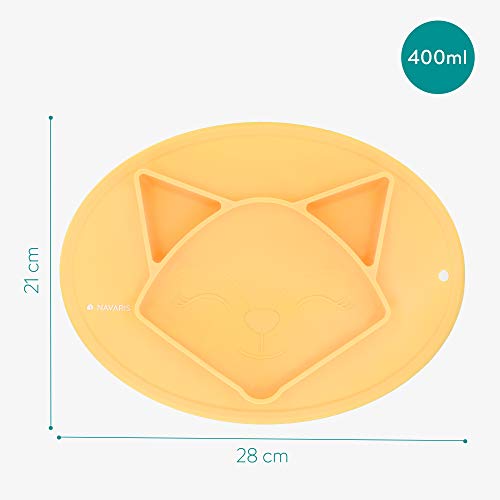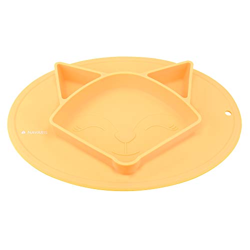 Navaris Piatto Bambini in Silicone 400ml - Piattino Pappa Neonato - Pasti Bimbi 4+ Mesi - Vassoio Anticaduta per Freezer Lavastoviglie - Gatto Giallo